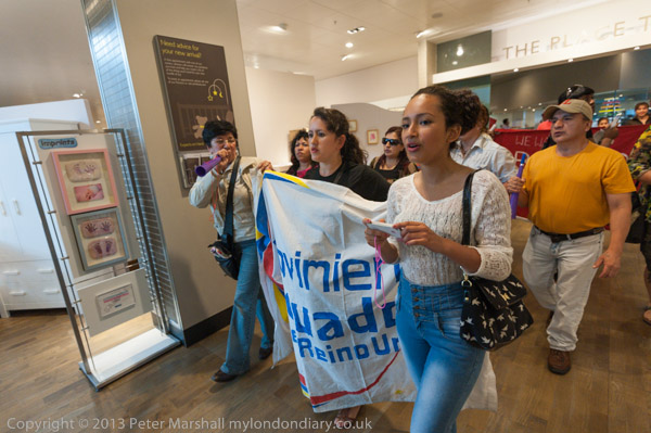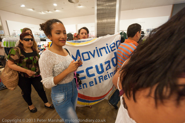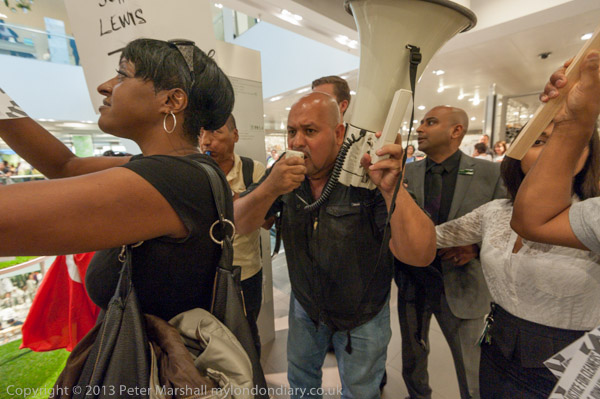 The protest took the John Lewis staff and customers by surprise, and the noise made everyone stop and watch