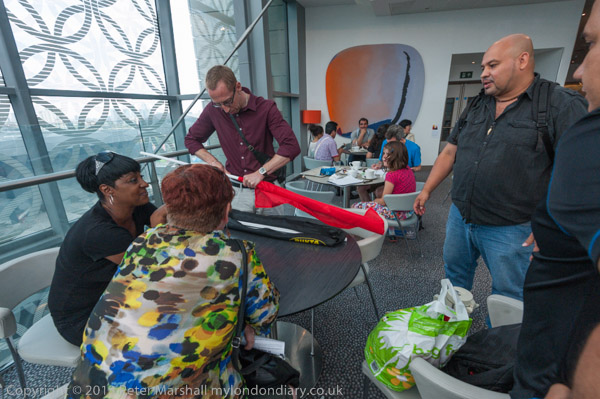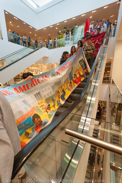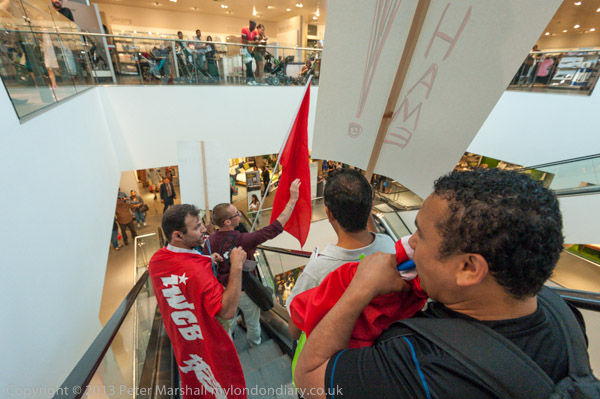 and gathered in the cafe area on the top floor of John Lewis, getting out their flags, banners and placards