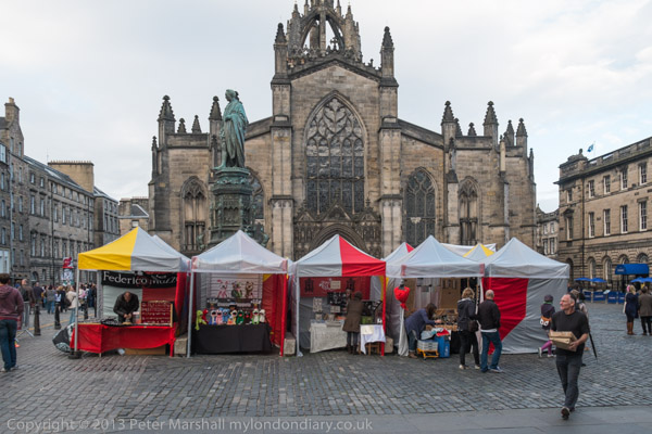 St Giles Cathedral (though it isn't a cathedral) and festival stalls