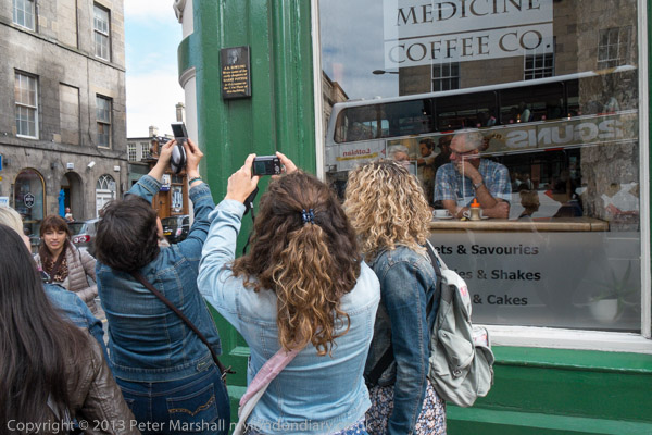Tourists photograph the sign saying J K Rowling wrote some of her first Harry Potter book here. I've not read it