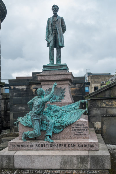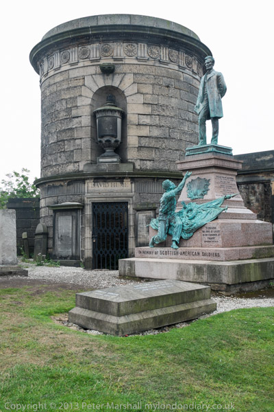 Old Calton Burial Ground with monuments to David Hume and Scottish American soldies, with Abe Lincoln on top