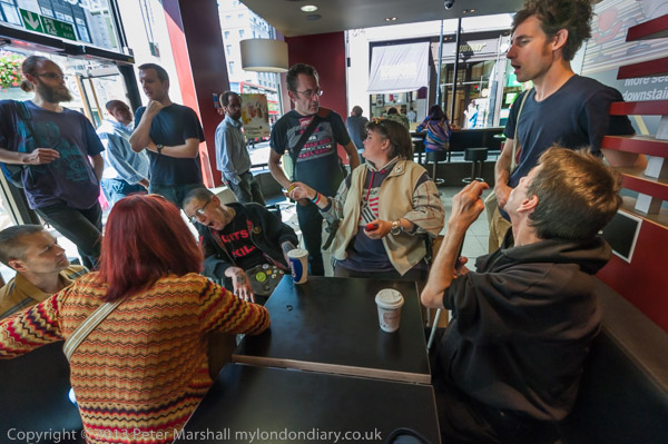 Activists meet up in a McDonalds not far from the BBC
