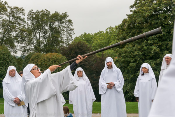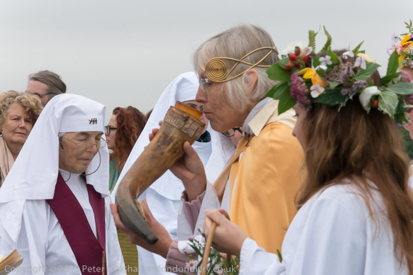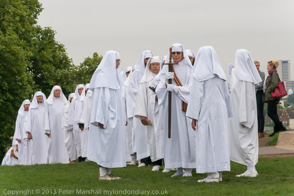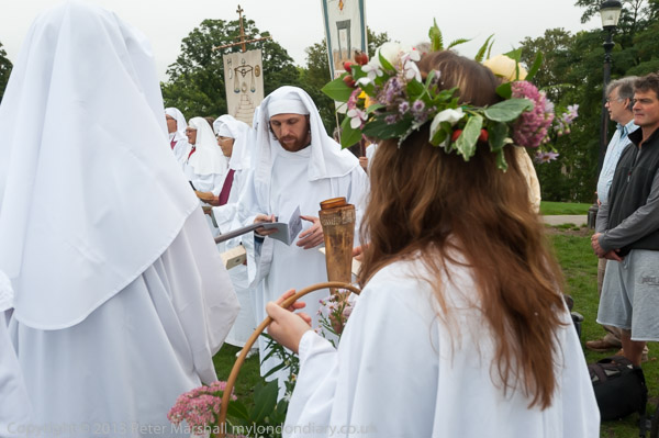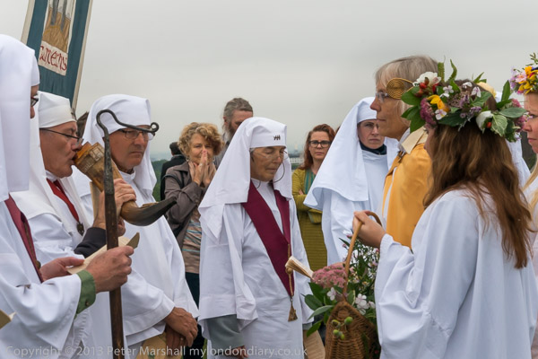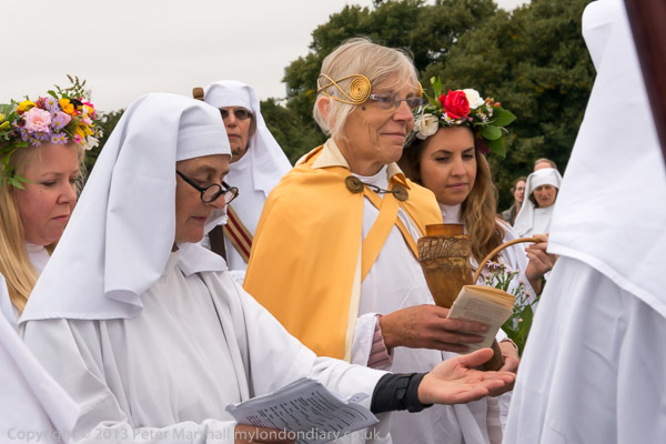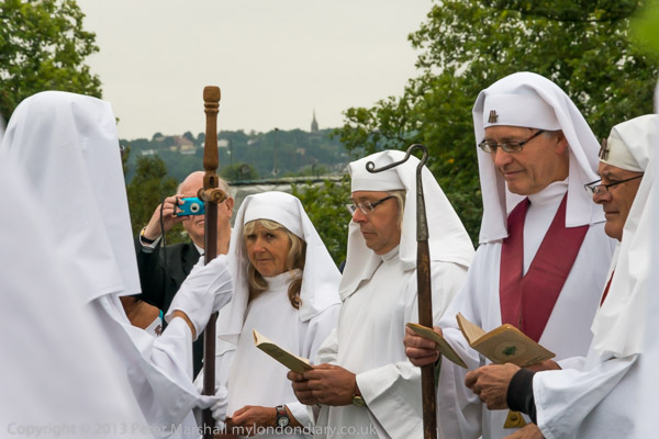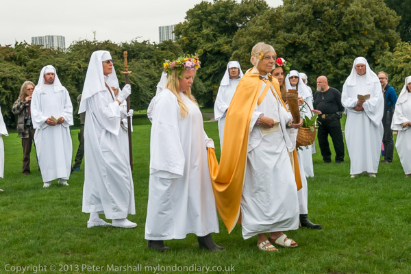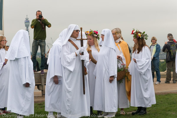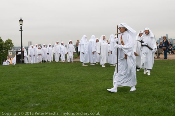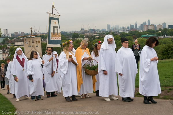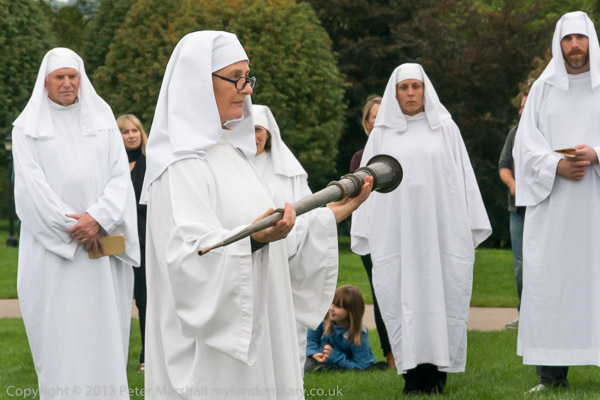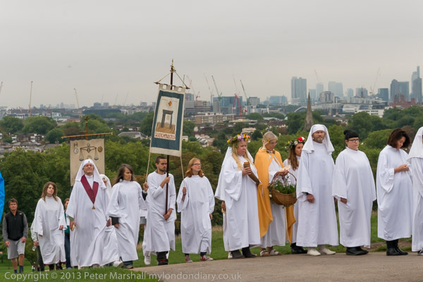 The Druid Order processes up to the top of Primrose Hill, led by a sword bearer