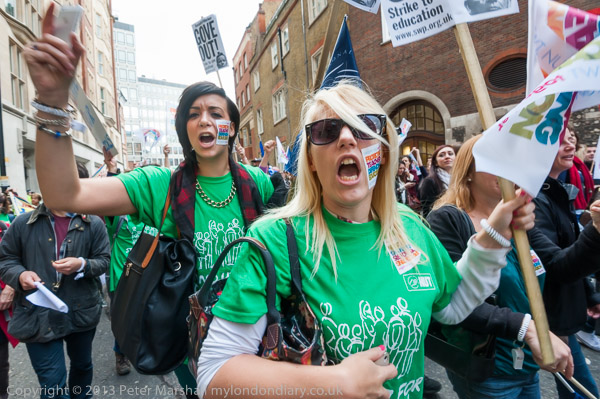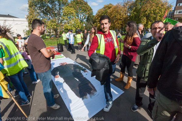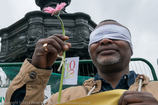 The protesters then took their banners, flags and placards and marched around to the south Entrance to Senate House, opposite the rather grander North Entrance to the British Museum, attracting a great deal of interest from the many tourists waiting to enter.