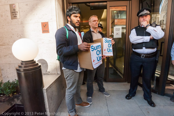 A police officer looks at the petition, which the organisers had got permission to hand in