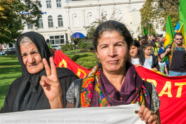 The banner with pictures of 'Three Kurdish Politicians Murdered in Paris' - three women activists shot in the PKK offices