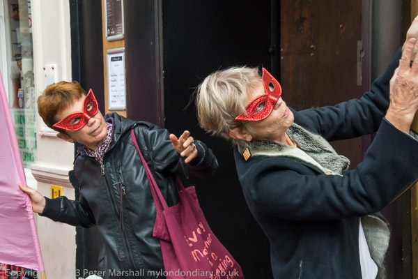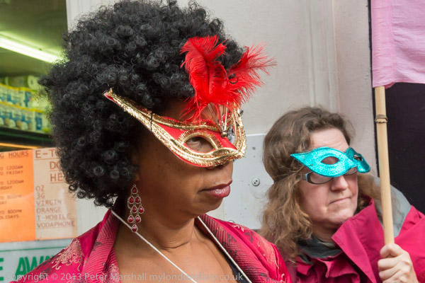 Most of the women, both sex workers, and their supporters, wore masks for the protest