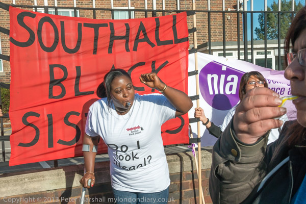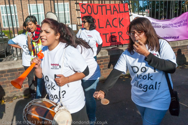 Most of the protesters were wearing Southall Black Sisters t-shirts with the message 'Do I look illegal?'