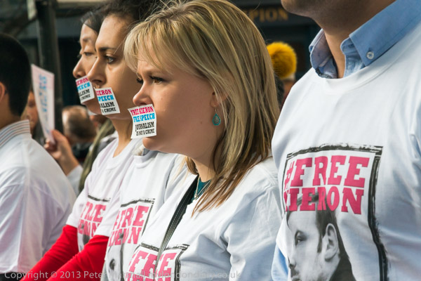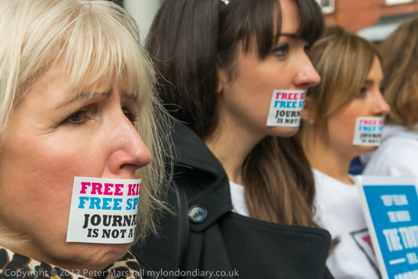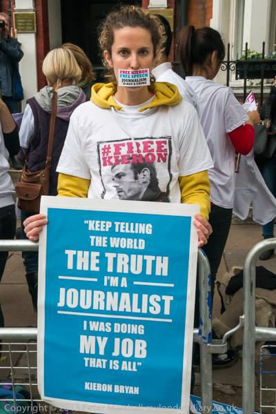 'Keep telling the world the truth: I'm a Journalist - I was doing my job that is all - Kieron Bryan' was the quote on a poster