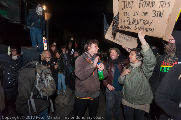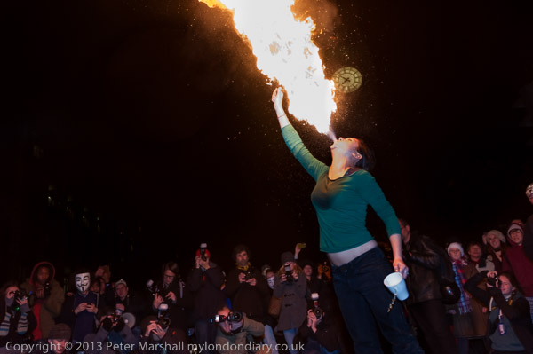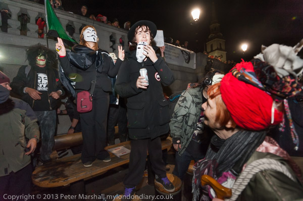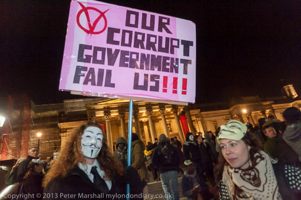 Bonfire of Austerity protesters come to join the Anon party in Parliament Square