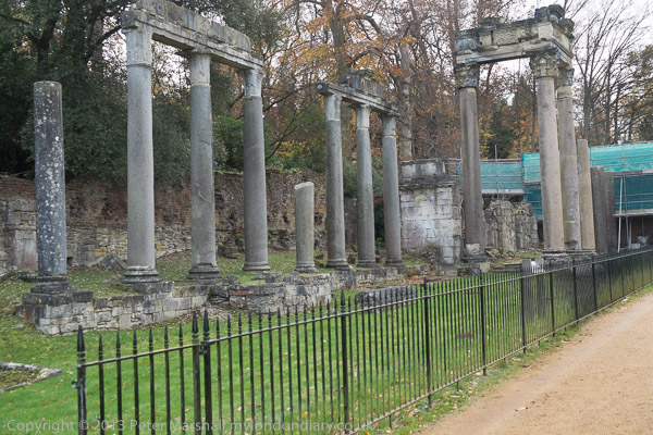 They were erected in the park in 1826 and moved to this position later after they had been vandalised. Currently under restoration