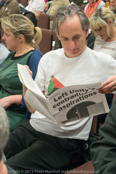Using these pictures:Members of Left Unity may use up to six of the pictures in this report on the Left Unity Founding Conference on non-commercial personal blogs so long as each is attributed '© 2013 Peter Marshall http://mylondondiary.co.uk' (you may replace the web address with a link if preferred.) A non-commercial blog is one without advertising or sales links and which is not produced as a part of your or someone else's employment. For use on other blogs and web sitesplease contact me (see above) and a fee may be required. ![]() ![]() Ken Loach ![]() ![]() ![]() ![]() ![]() ![]() Countin the vote ![]() Knitting ![]() Pete McLaren |