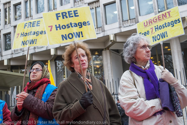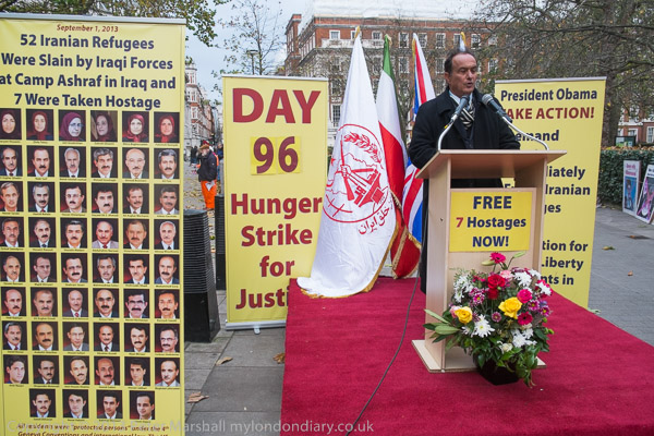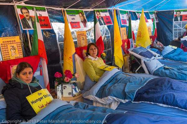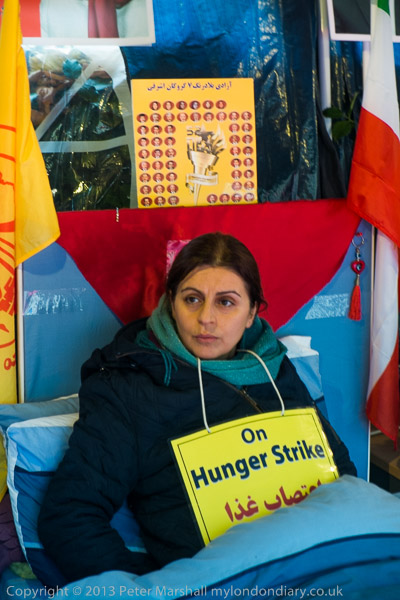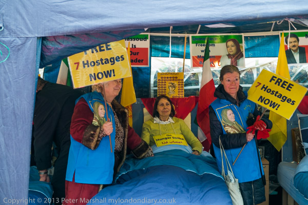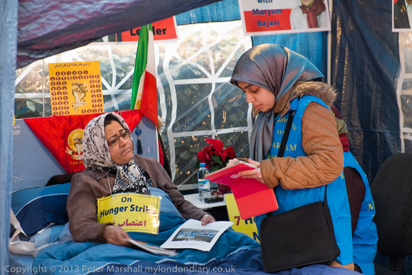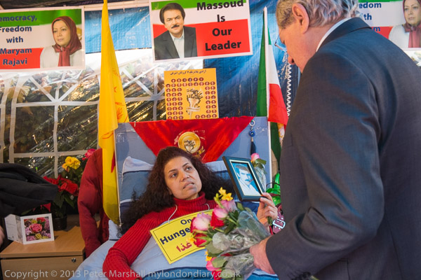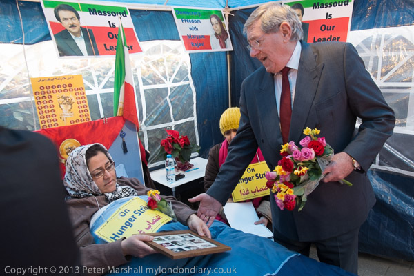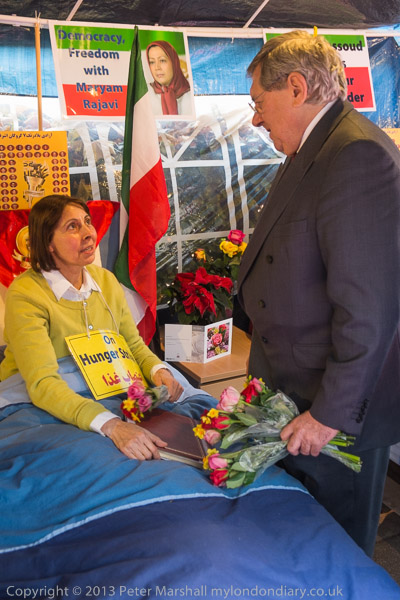 Brian Binley MP talks to the hunger strikers and presents them with flowers