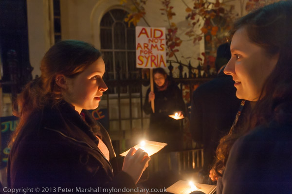 Syria Peace and Justice pilgrimage ended at theSyrian embassy with a candlelit vigil