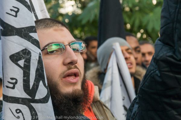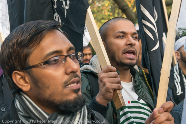 Hizb ut-Tahrir supporters came to the Pakistan High Commission and picked up the black and white flags