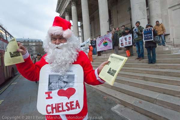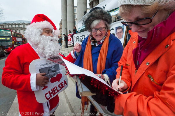 Santa hands out leaflets calling for the release of Chelsea Manning