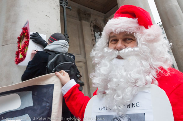Two passing Santas joined in briefly but had to be told to leave as this was a silent protest - St Martins doesn't allow anything else