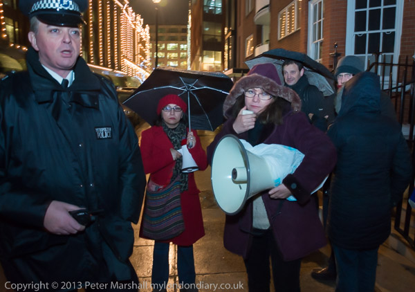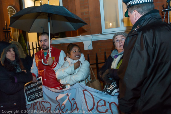 and say they could be a lot quieter if they were actually allowed to protest outside the embassy rather than on the other side of the road