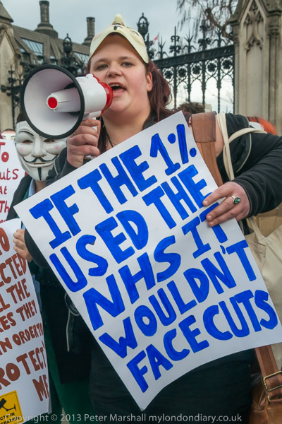 'If the 1% Used the NHS it wouldn't face cuts' and 'I need to be protected from all the measures they take in order to 'Protect' me'