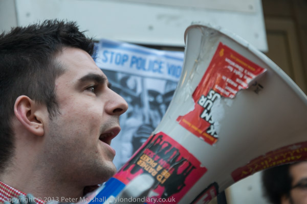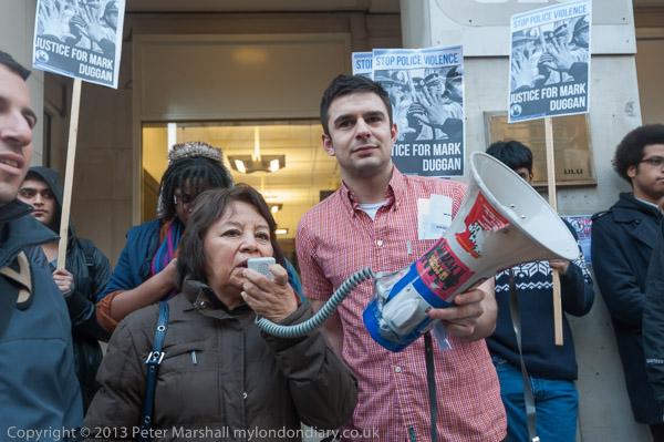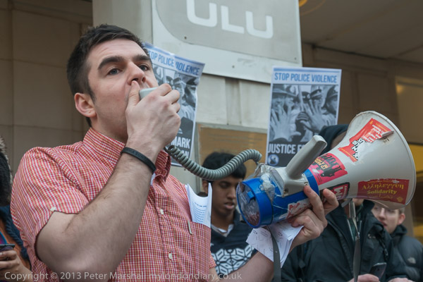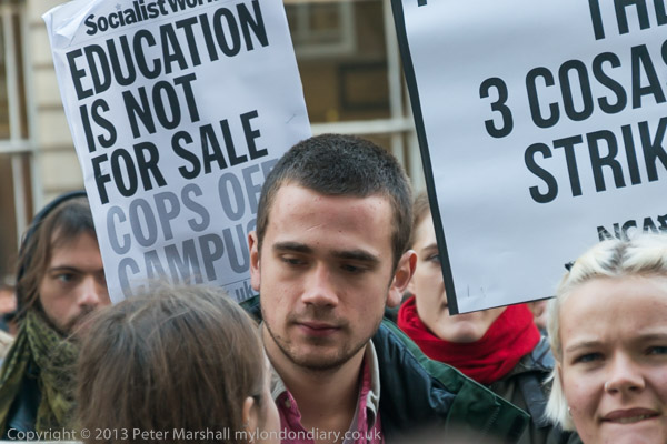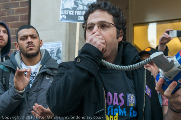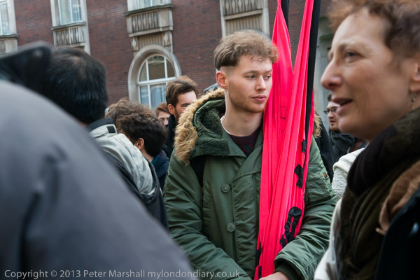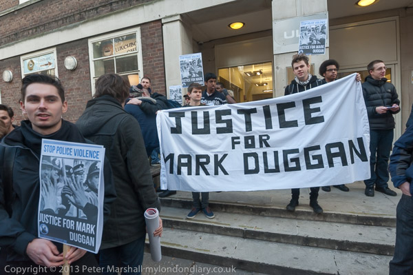 Many of the students had placards calling for Justice for Mark Duggan, and there was a banner