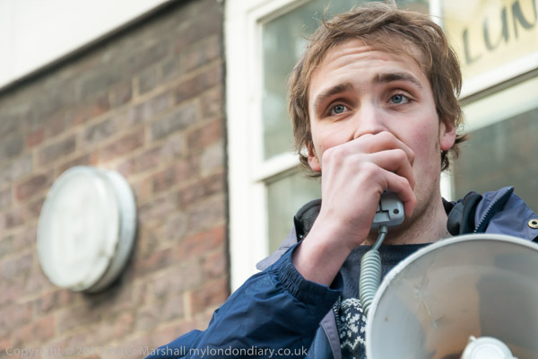 ULU Vice-President Daniel Cooper hands out maps showing some of the places for the protest