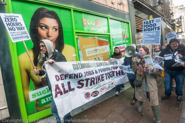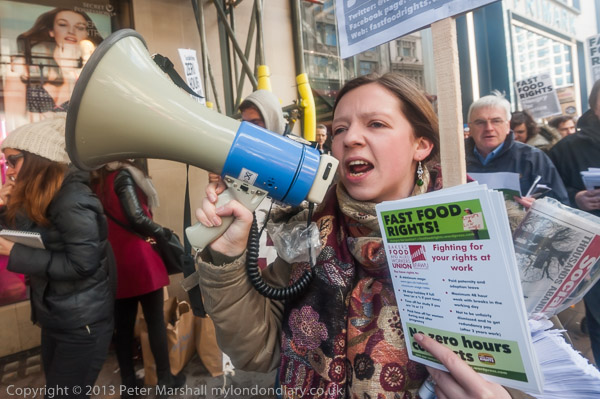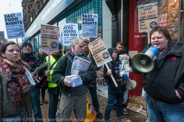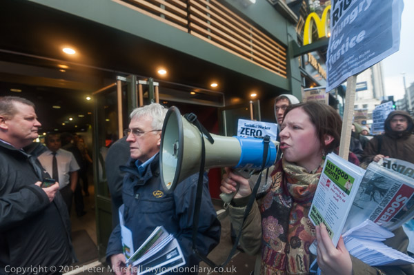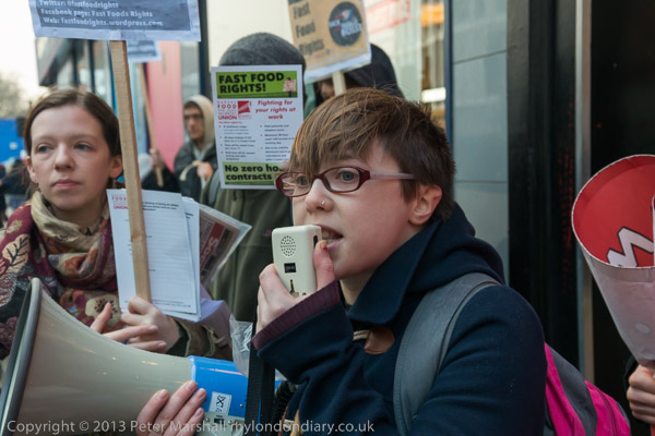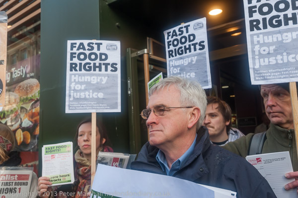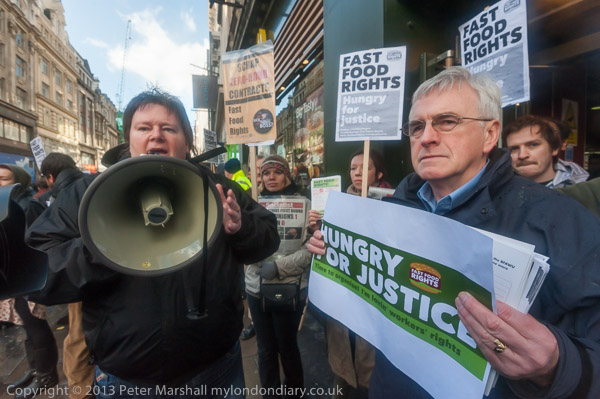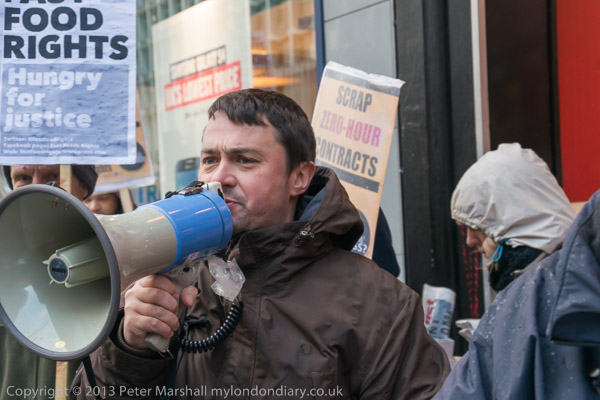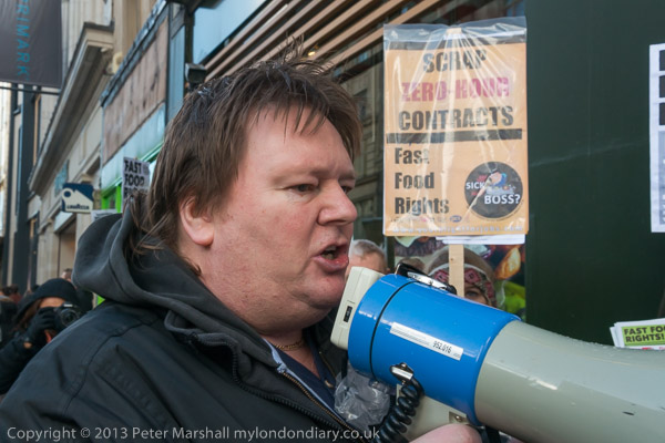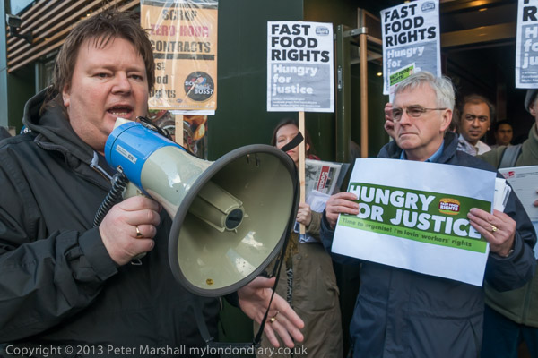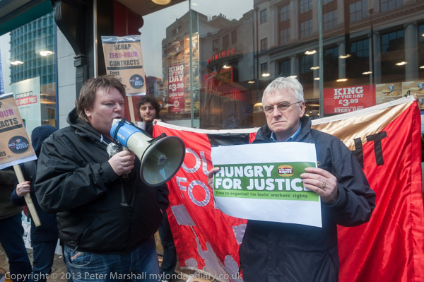 Ian Hodson, national president of BFAWU speaking outside Burger King in Tottenham Court Rd