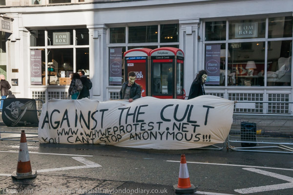 The protest here and in Queen Victoria St in Feb 2008 involved several hundred people, brought together by the Internet
