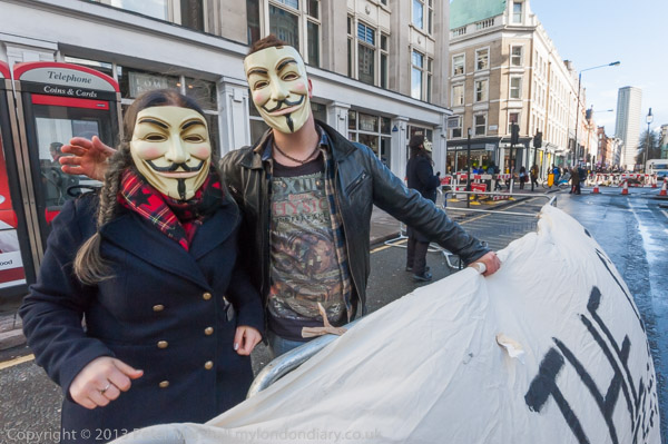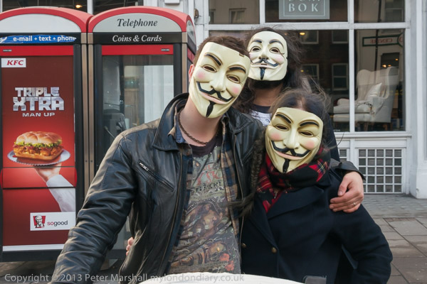 in what was I think the first protest in the UK organised entirely in this way, and the first at which we saw the 'V for Vendetta'