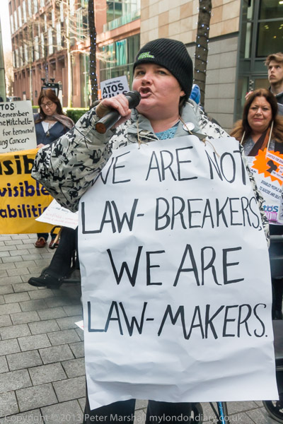 But as Paula Peters says in her placard 'We are not Law-Breakers, We Are Law-Makers'. Disabled people want