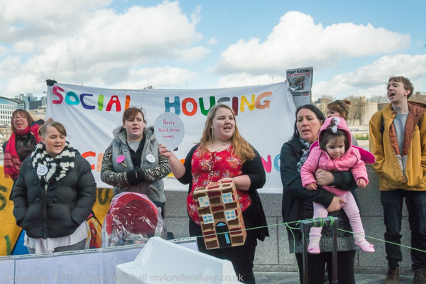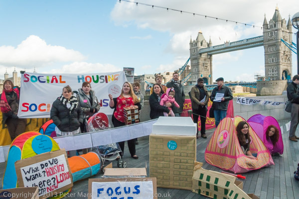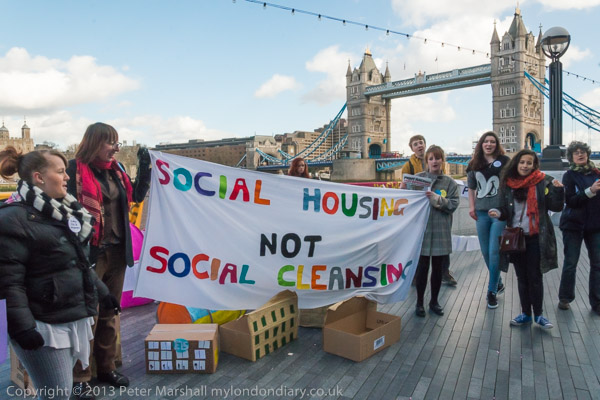 and the banner 'Social Housing Not Social Cleansing'