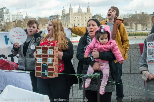 The mothers had come on an open-top bus from Stratford and some of their supporters had also brought their children