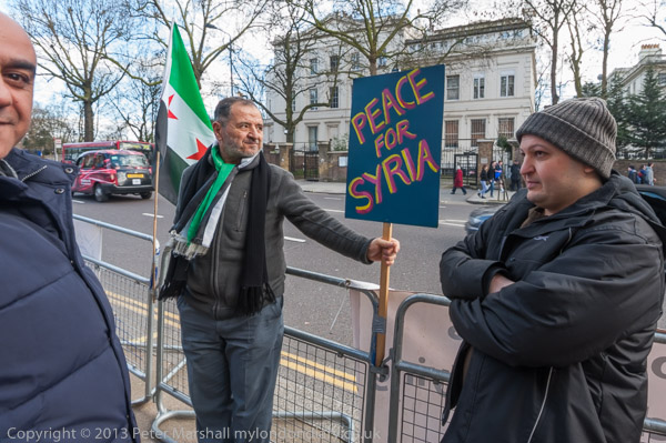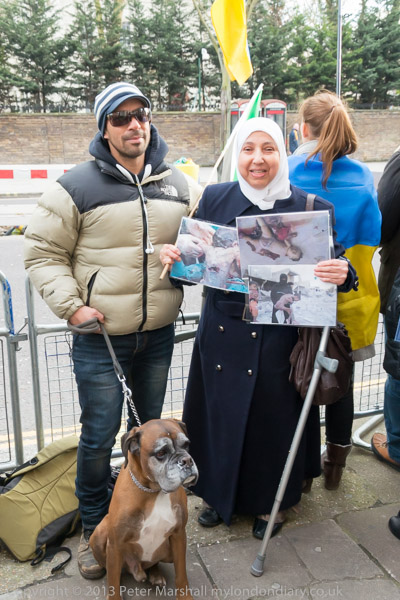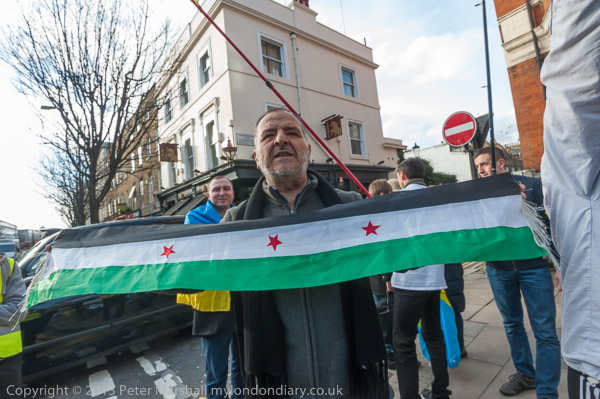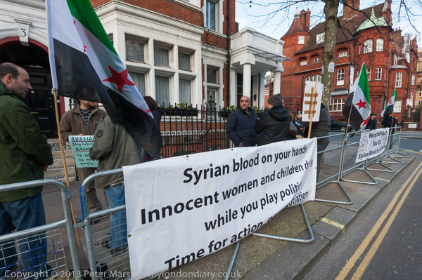 The Syrians for peace hold regular protests opposite the Russian embassy