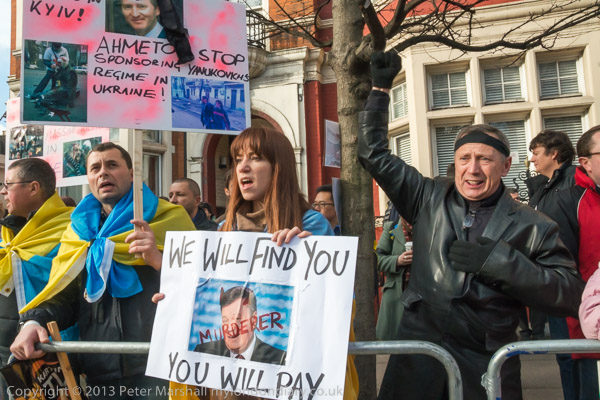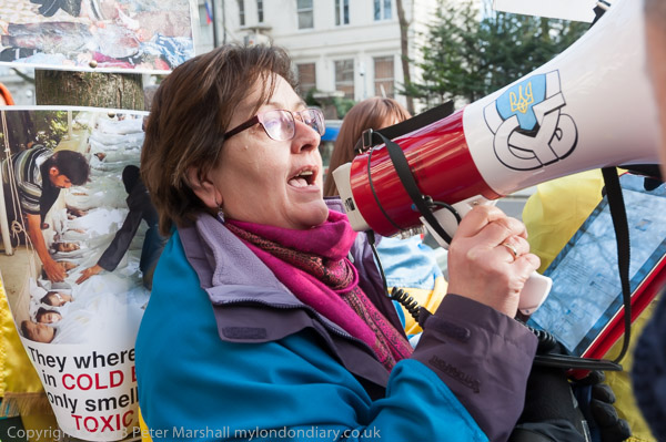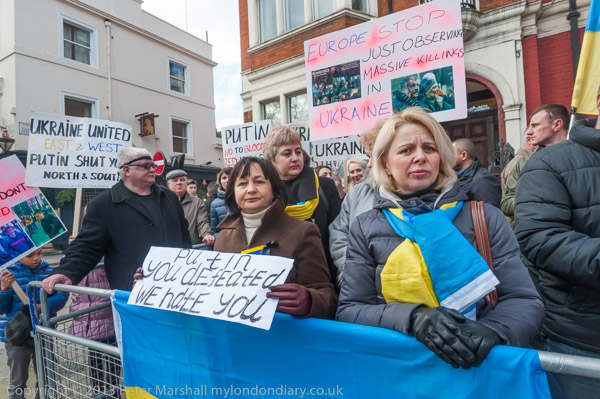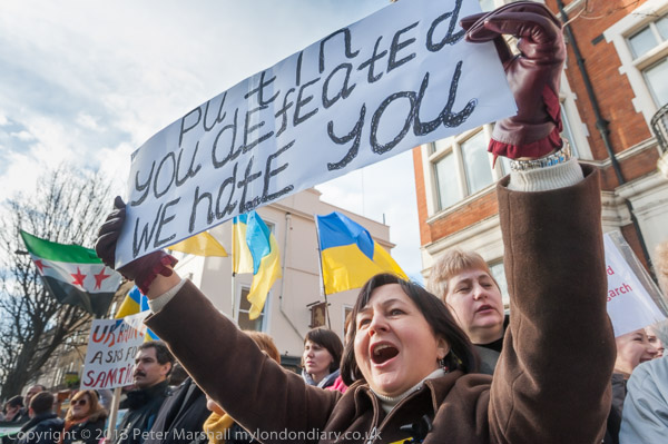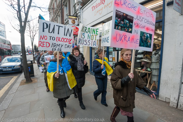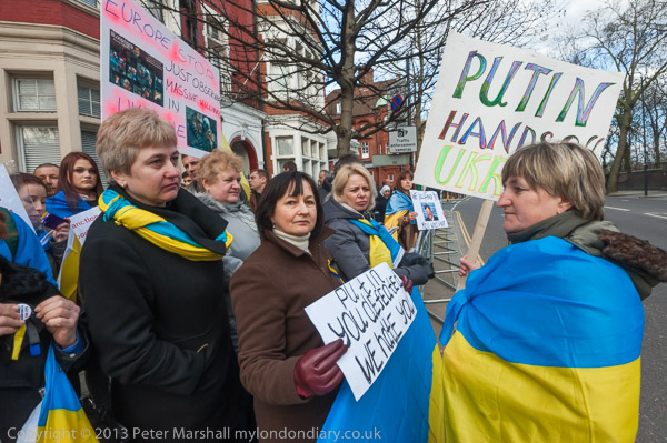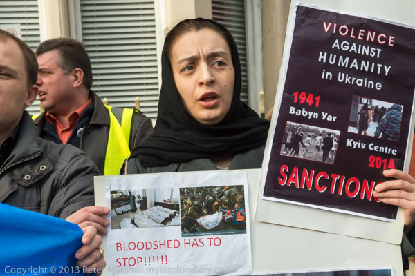 Most of the Ukrainians marched from a nearby cultural centre to the Russian embassy