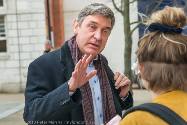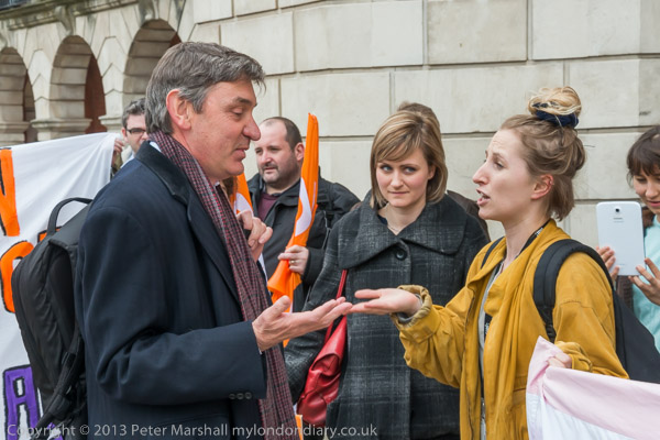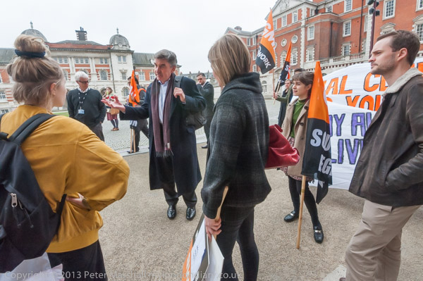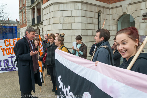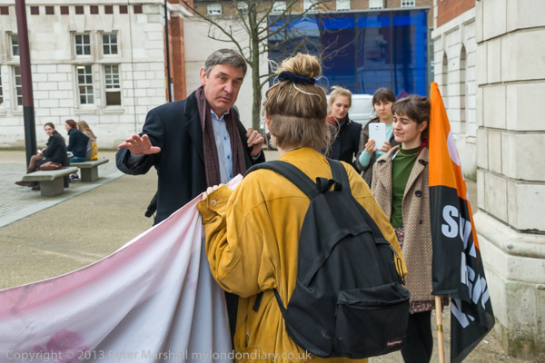 After he had left the protesters walked across the square to the building where the meeting was to be held