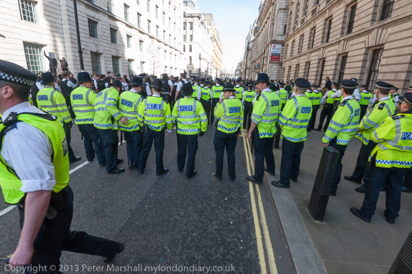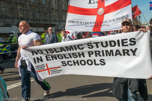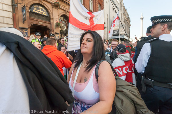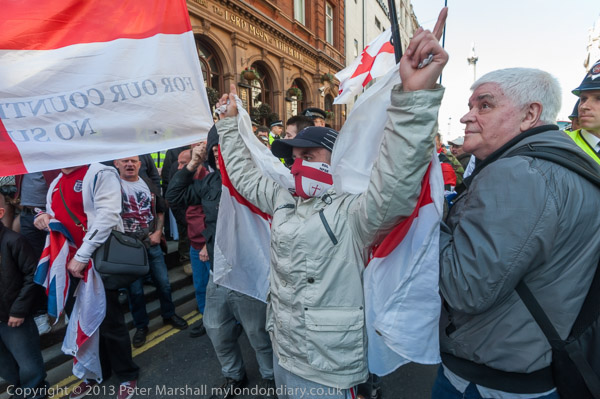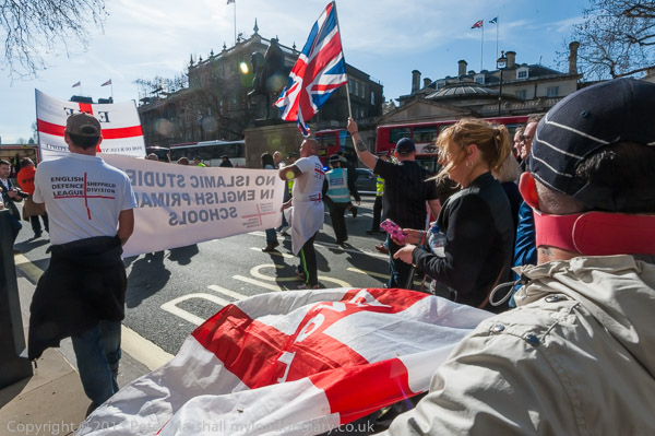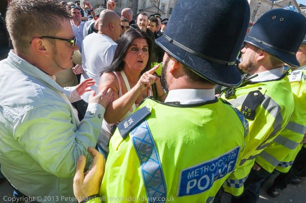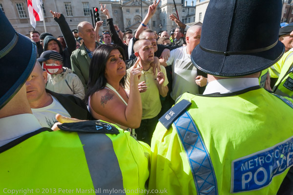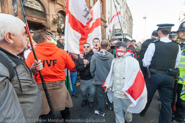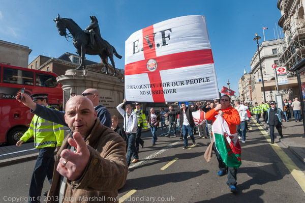 EVF make an attempt to rush towards the counter protesters but police and stewards hold them back