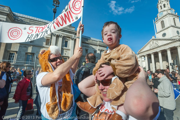 Global Heritage protesters on the 'Save Our Lions' march come into Trafalgar Square