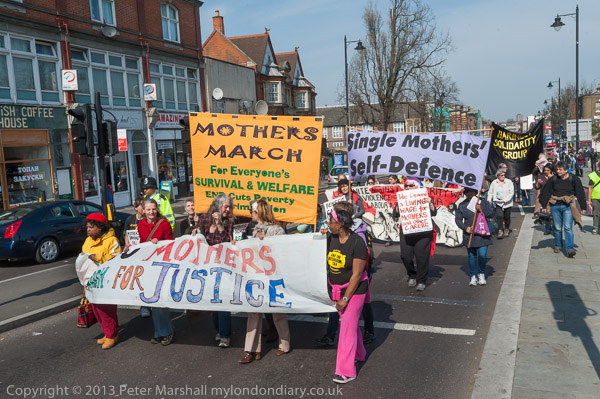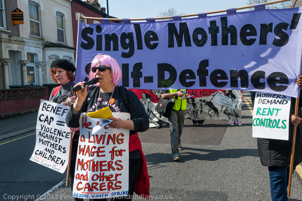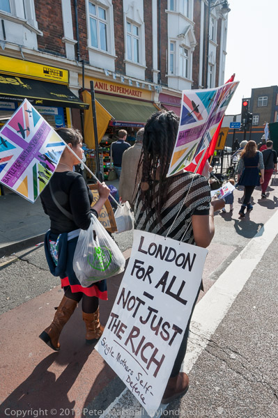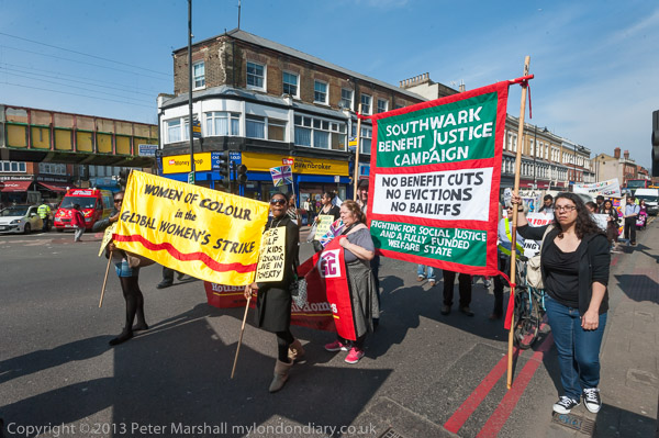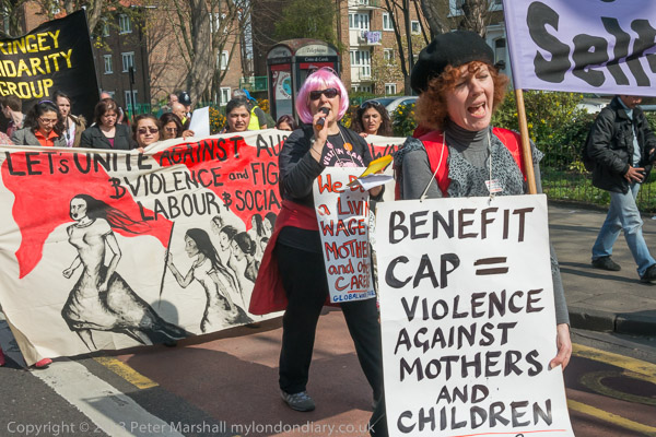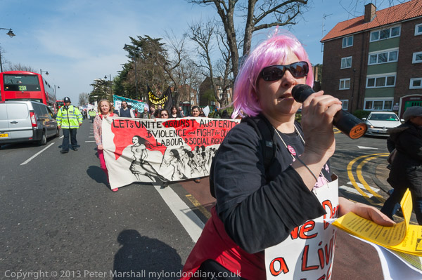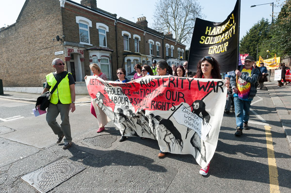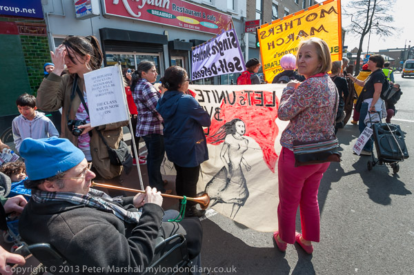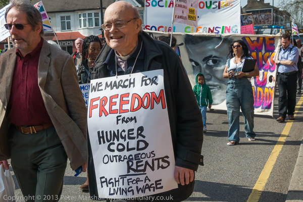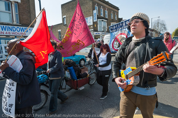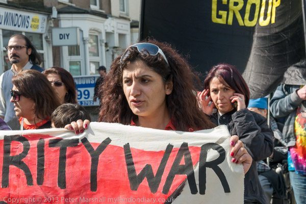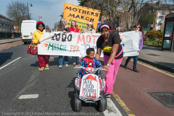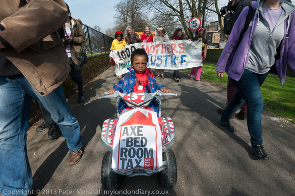 And the march starts, with Spiderman's car with an 'Axe Bedroom Tax' poster