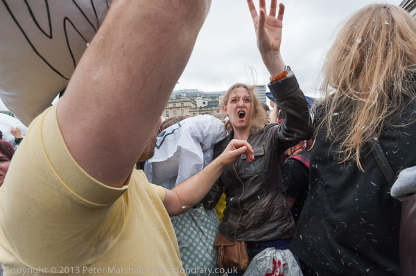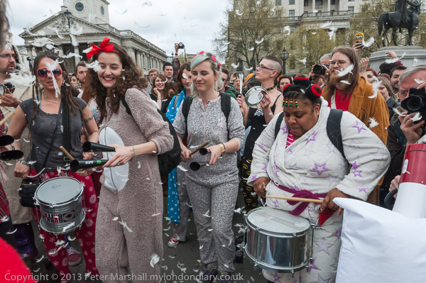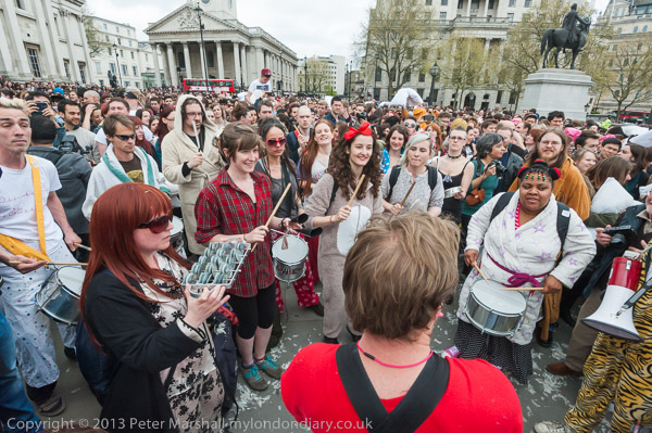 The Samba band on the North Terrace of Trafalgar Square which had been closed off to stop the event