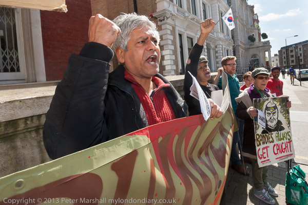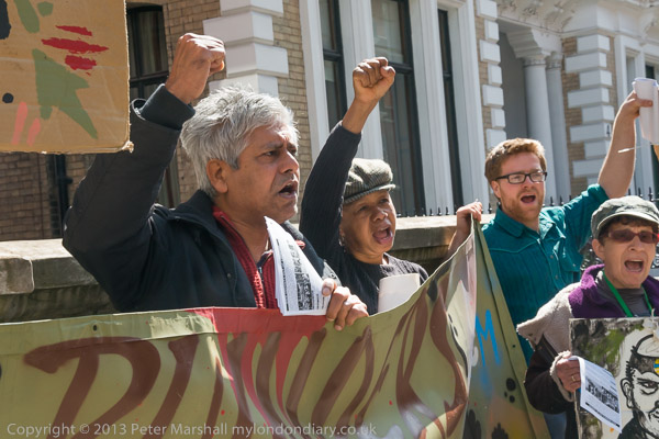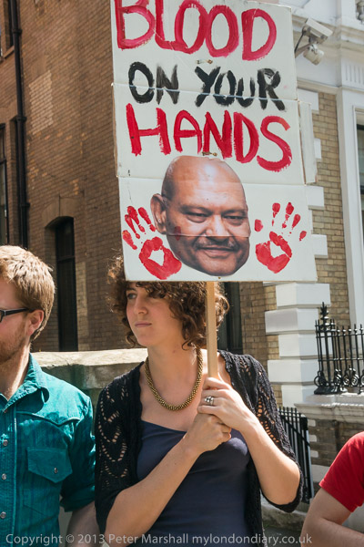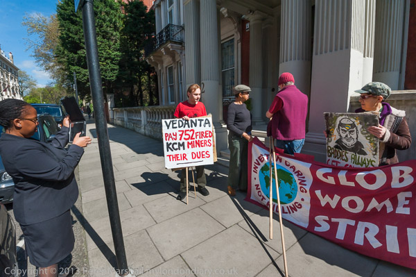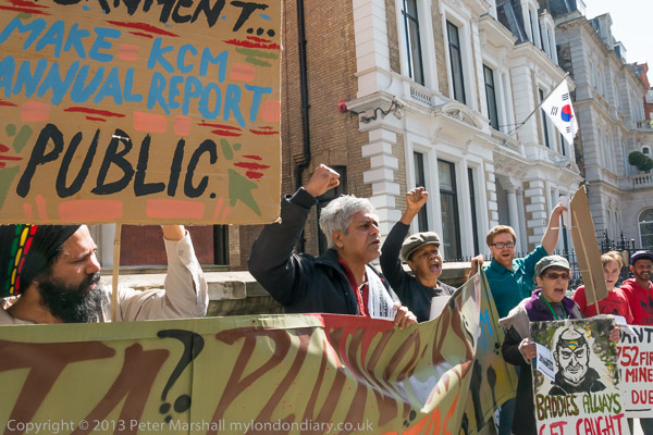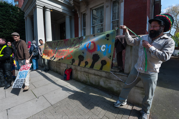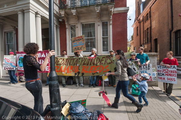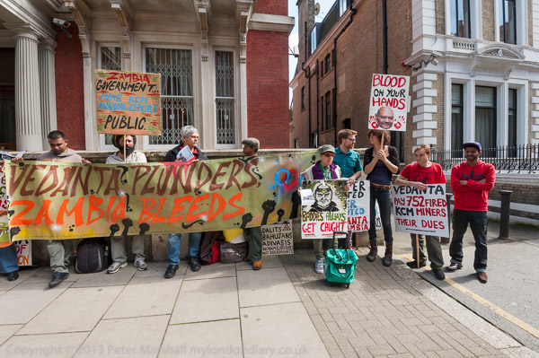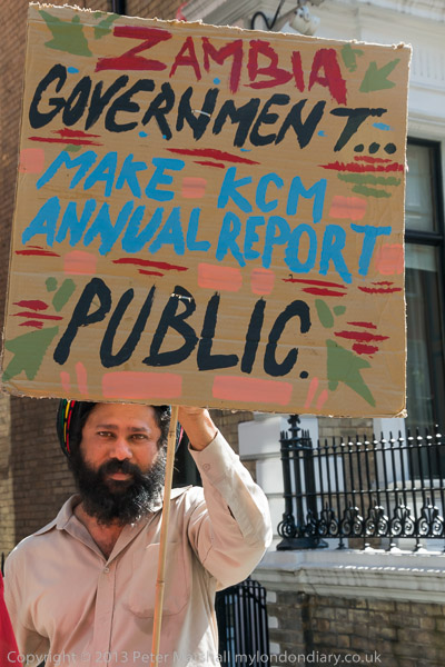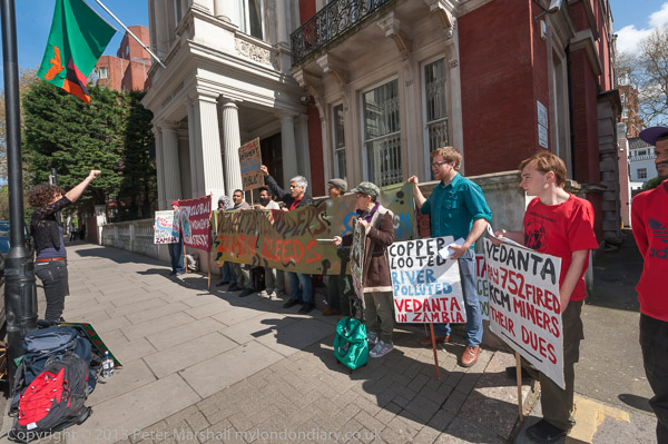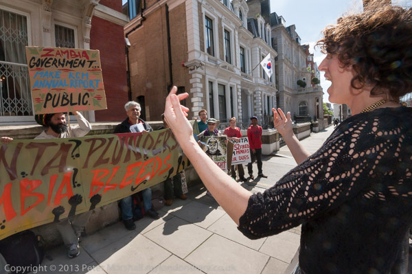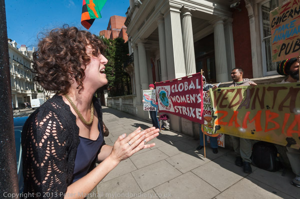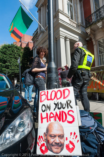 Protesters leave the entrance to the Zambian High Commission clear but protest outside