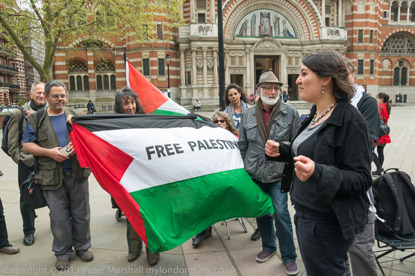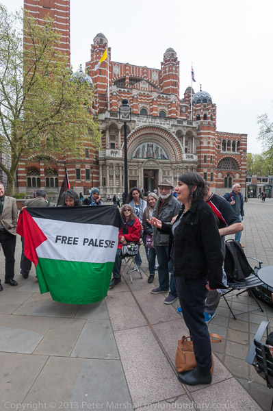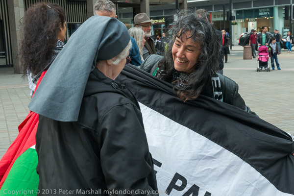 A nun talks to one of the protesters who met outside Westminster Cathedral