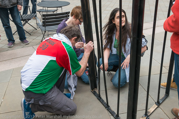 but the protesters managed to keep one of the doors open, so the noise of the protest would be heard inside