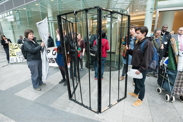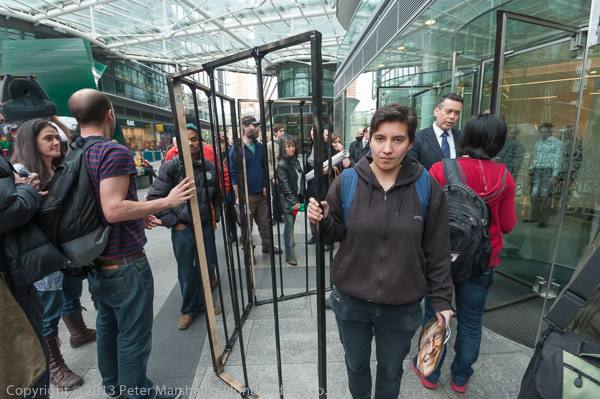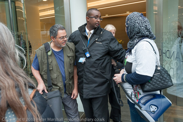 The secuirty there seem to have been expecting the protest and refused entry