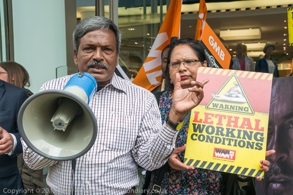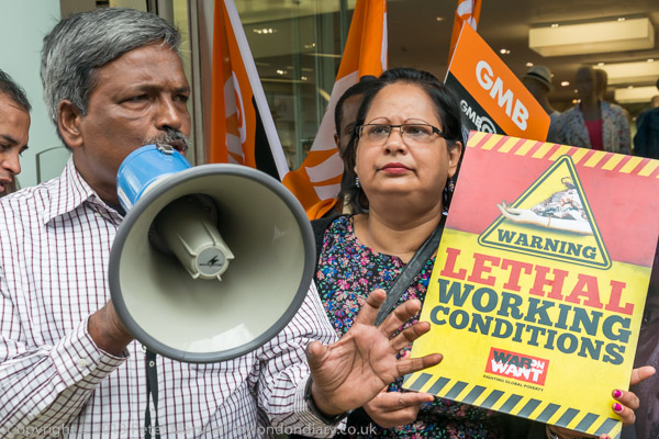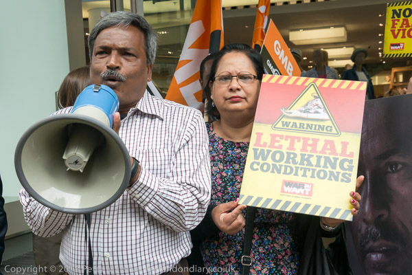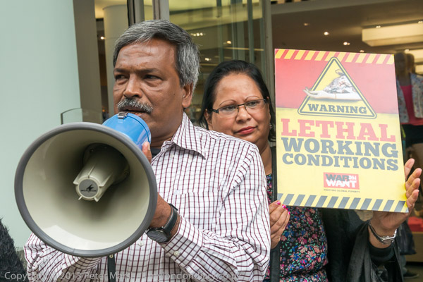 Amin Haque of the National Garment Workers Federation in Dhaka speaking