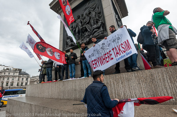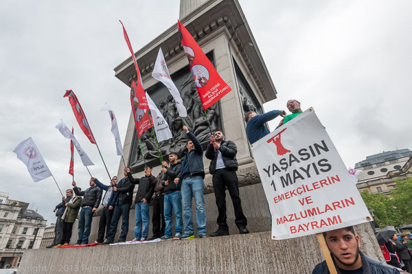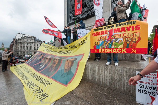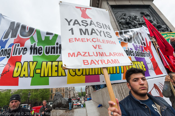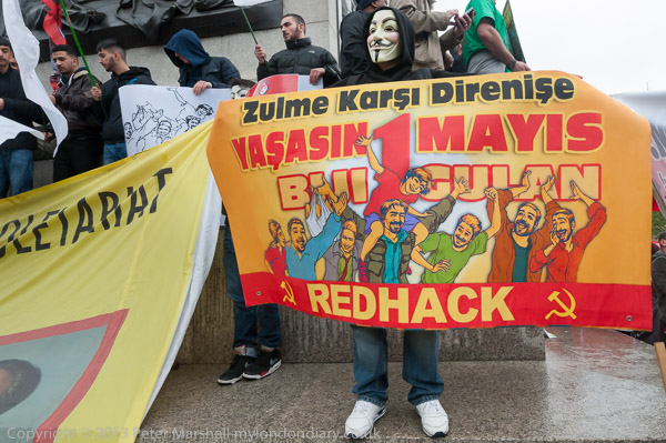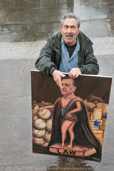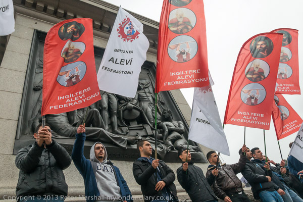 Kaya Mar with one of his pictures and Alevi Federation marchers