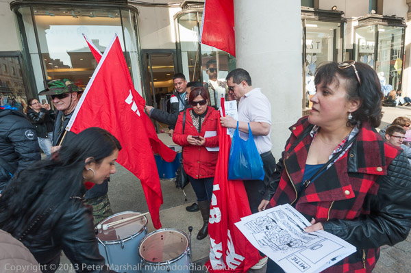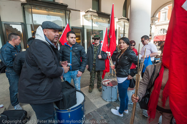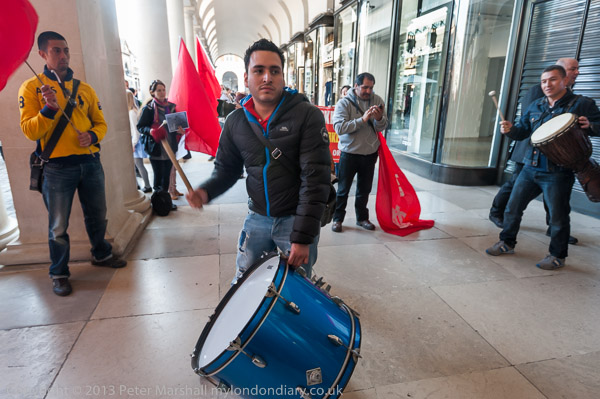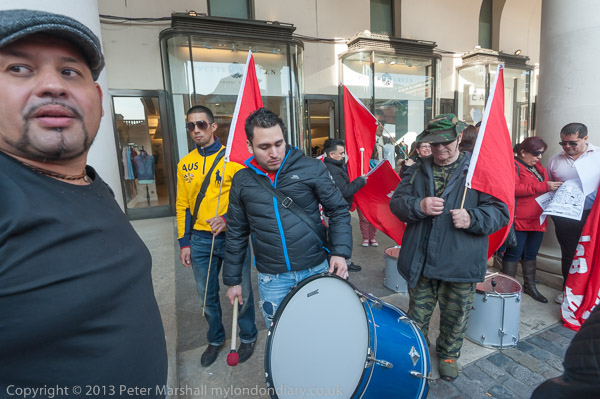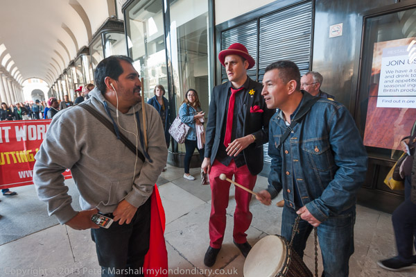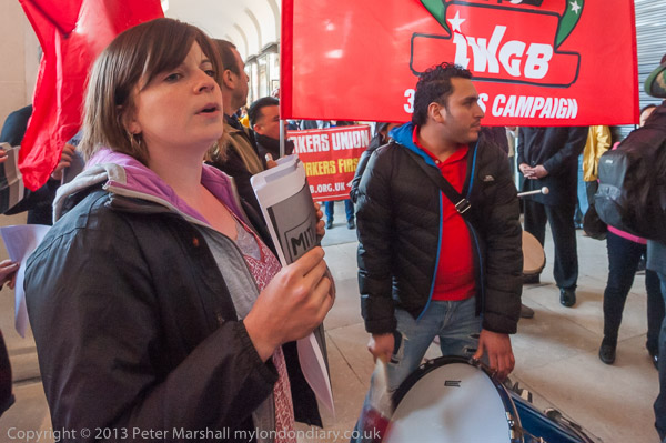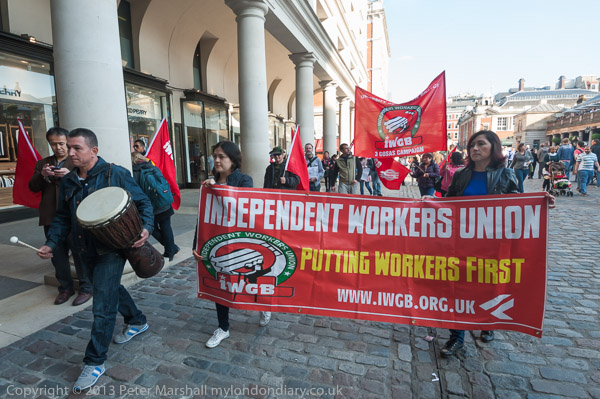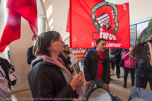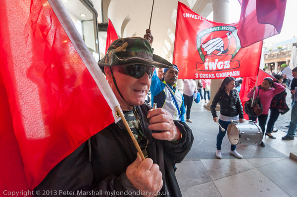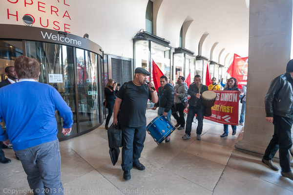 A group of cleaners and supporters from the IWGB arrived close to the Royal Opera House