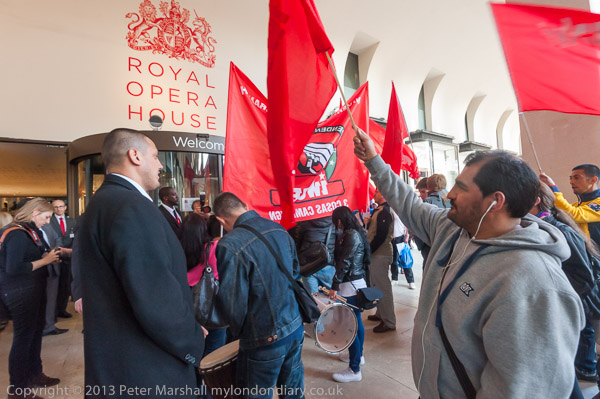 Royal Opera House Secuirty tell the protesters they are not welcome