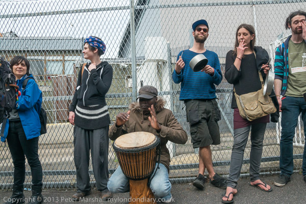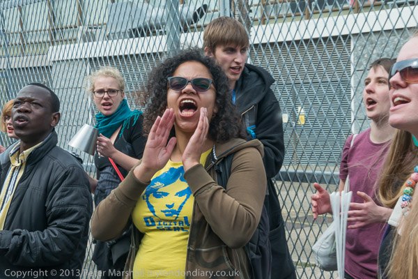on mobile phones. After a long and noisy protest, the protesters moved around the the back of the prison