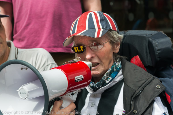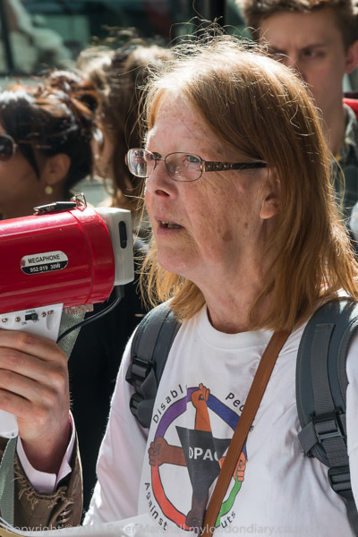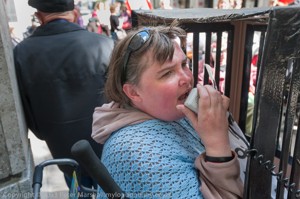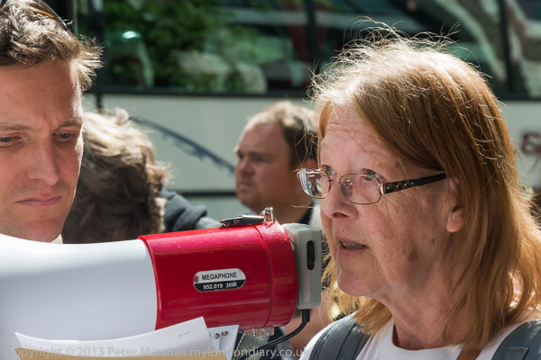 Mary from Newcastle tells the protest her MP has agreed to come and see her at the protest