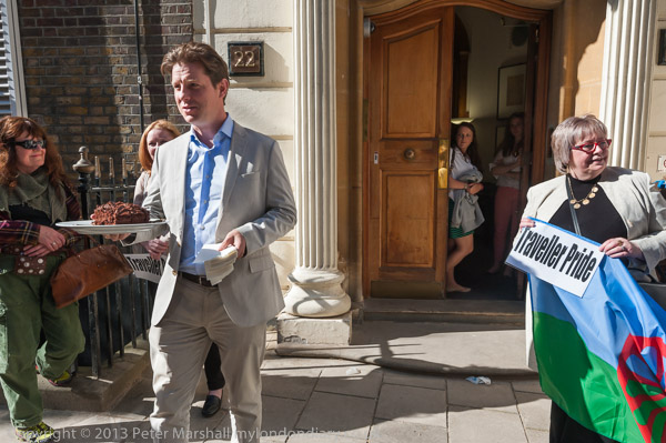 Spectator Editor Fraser Nelson comes out and offers the protesters some of his birthday cake
