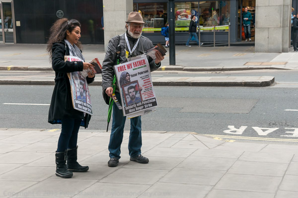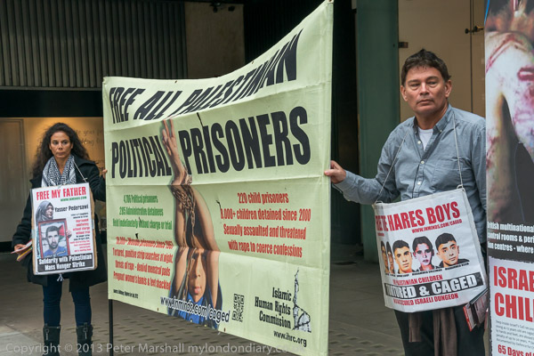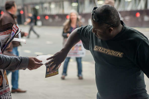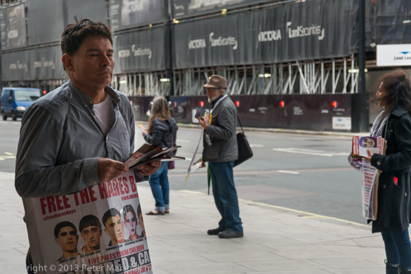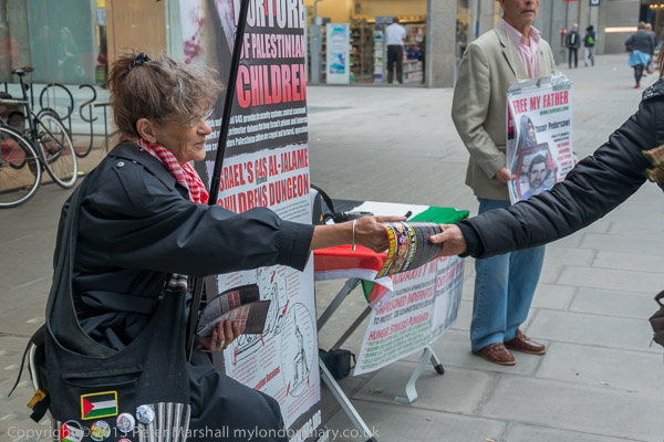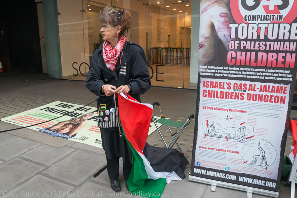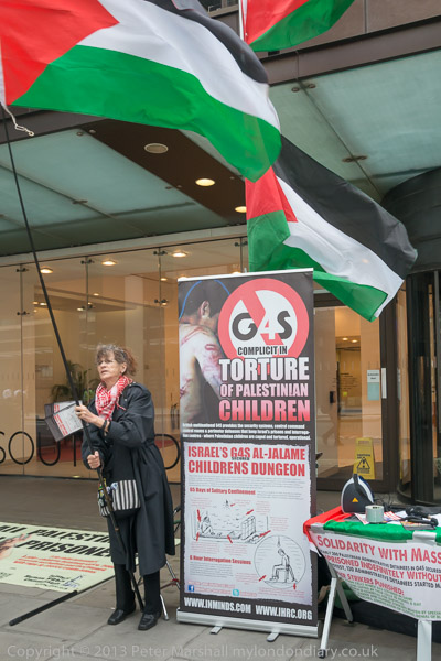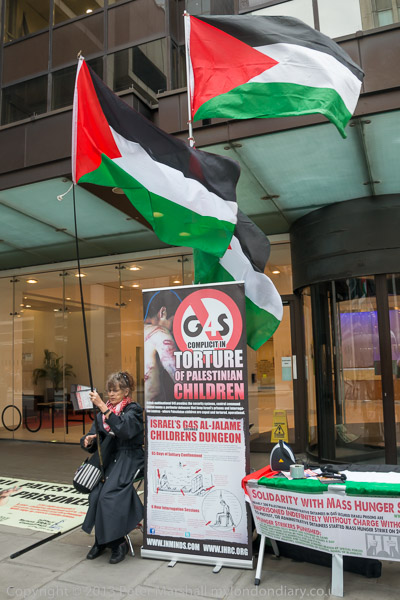 Giving out leaflets on Victoria St, outside the London HQ of G4S which helps to run the prisons in Israel